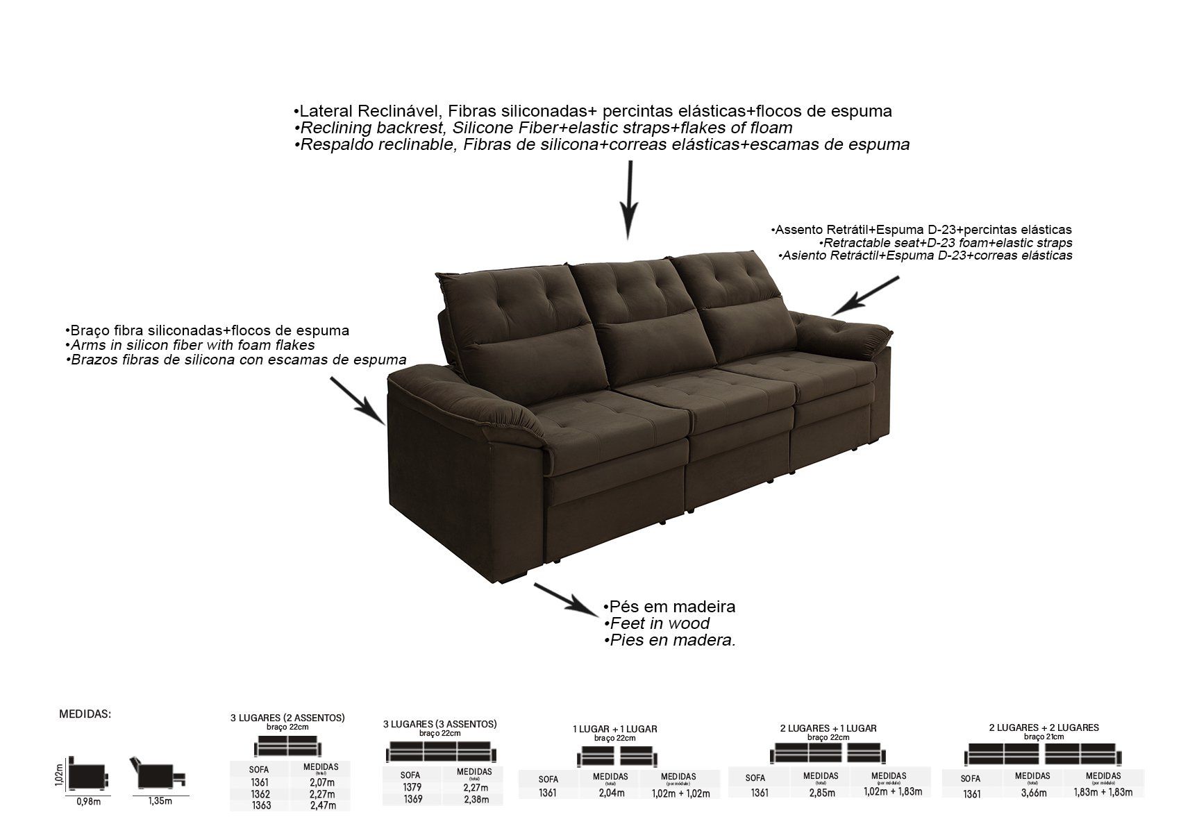 BRAÇOS DE FIBRAS SILICONADAS MISTAS COM FLOCOS DE ESPUMA
