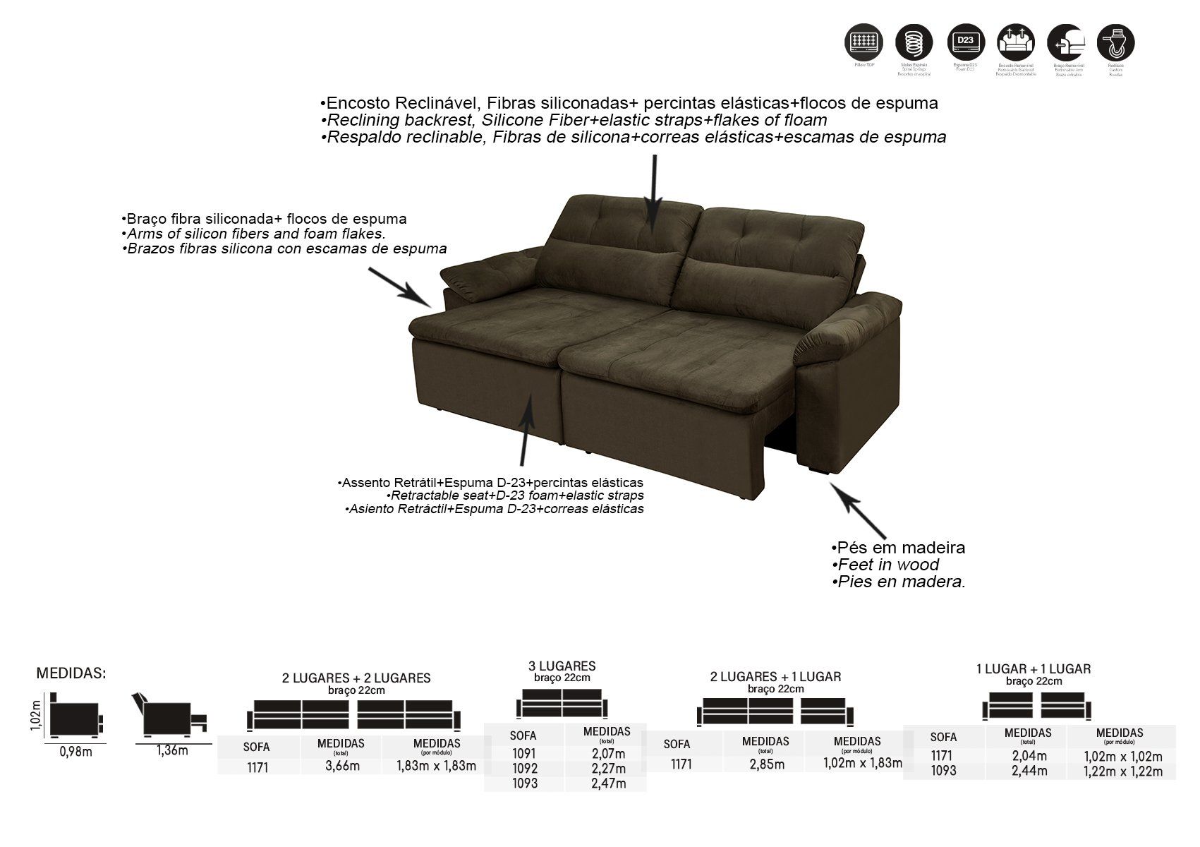 Perfeito para que você tenha mais espaço e possa descansar para assistir seus filmes e séries favoritas, enquanto seu revestimento traz mais charme e maciez ao produto.