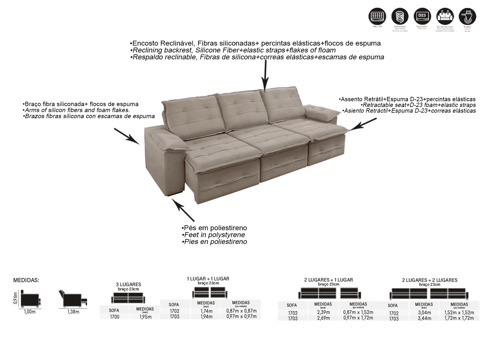 BRAÇOS EM FIBRAS SILICONADAS MISTAS COM FLOCOS DE ESPUMA
