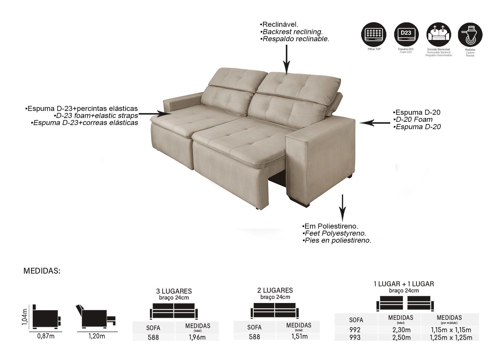 TIPO DE ENCOSTO RECLINÁVEL / REMOVÍVEL